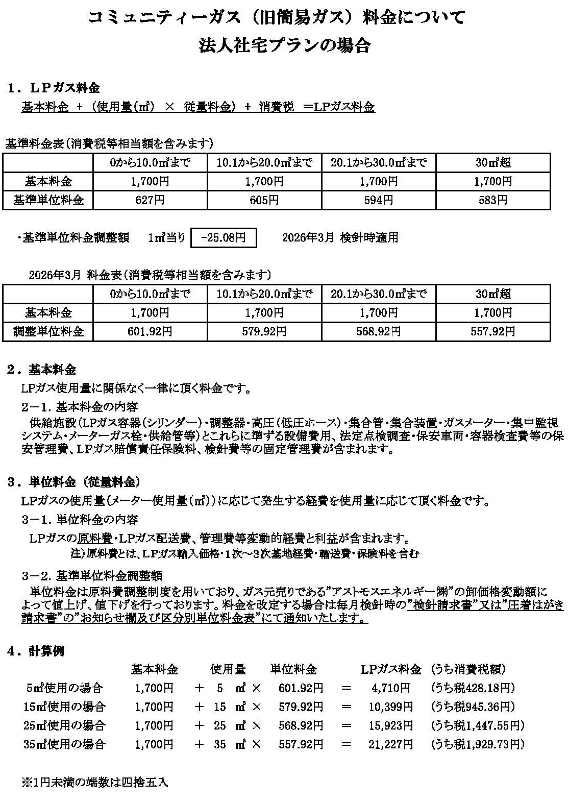 コミュニティーガス(旧簡易ガス)とは、ニュータウン・住宅団地・マンションなどの小規模な区域において簡易なガス発生設備を設置し、道路に埋設されたガス管を通じて各ご家庭へプロパンガスをお届けする方式のことをいいます。コミュニティーガス事業は、簡易なガス発生設備でガスを発生させ、一の団地(供給地点群)内において70戸(供給地点)以上のガス需要家に対し、導管でガスを供給する小売事業です。